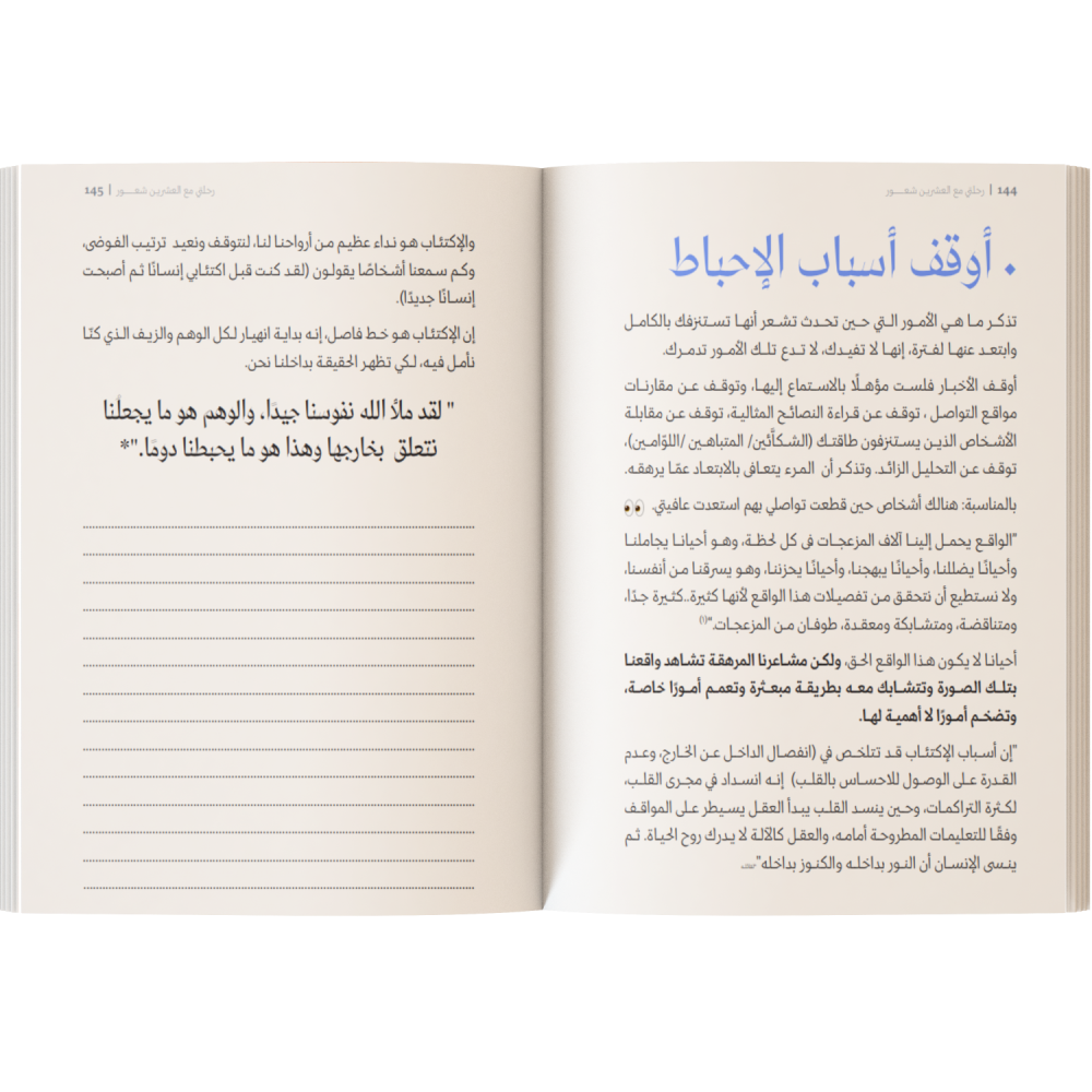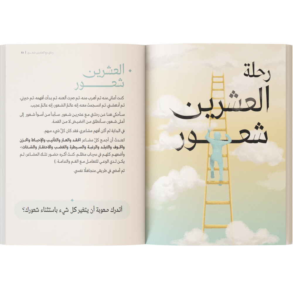 يتحدث فيه (أُنس) عن رحلته مع المشاعر من أدناها لأجملها و من خلال معاناته و ملاحظته و دراسته و تجربته يقوم بوصف عميق لكل شعور و يقدم مقياسًا واضحًا لك لتعرف إن كنت تعاني من هذا الشعور أو ذاك ثم يذهب لتفكيك الأفكار التي جعلتك متمسكًا به ثم يطرح لك طرقا تحررك من ألمه لتنتقل لشعور أجمل و أوسع. من خلال التوجيهات والتمارين.