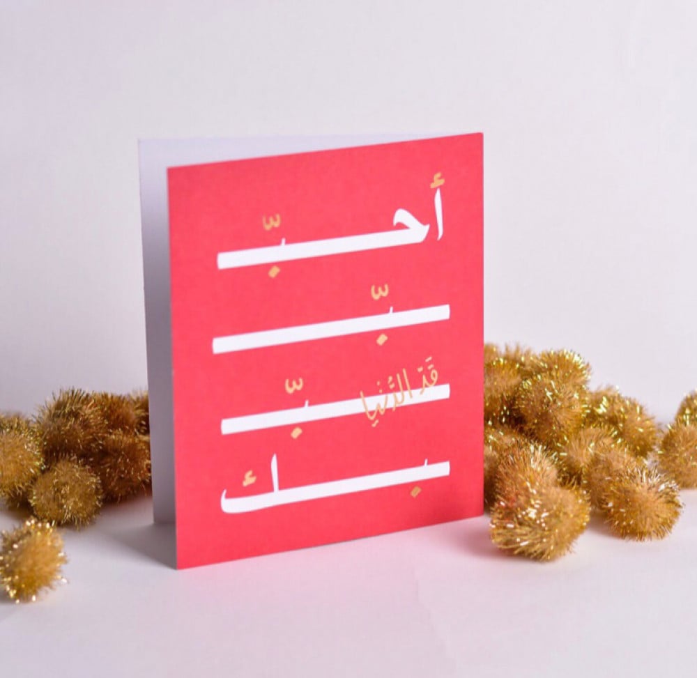 بطاقة أحبك قد الدنيا - أحمر