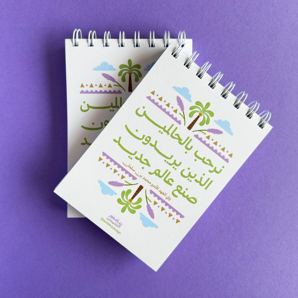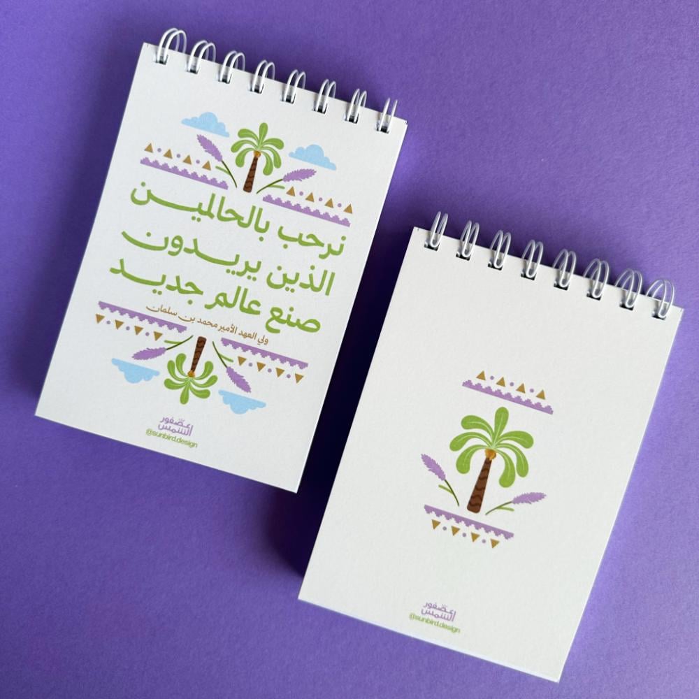دفتر يجمع بين الأناقة و الإلهام، بتصميم سعودي أصيل يعكس روح الهوية المحلية. يتميز بغلاف أنيق يحمل عبارة ملهمة لصاحب السمو الملكي الأمير محمد بن سلمان، ليكون رفيقك المثالي لتدوين الأفكار ، تنظيم الملاحظات، و توثيق الإبداعات اليومية.